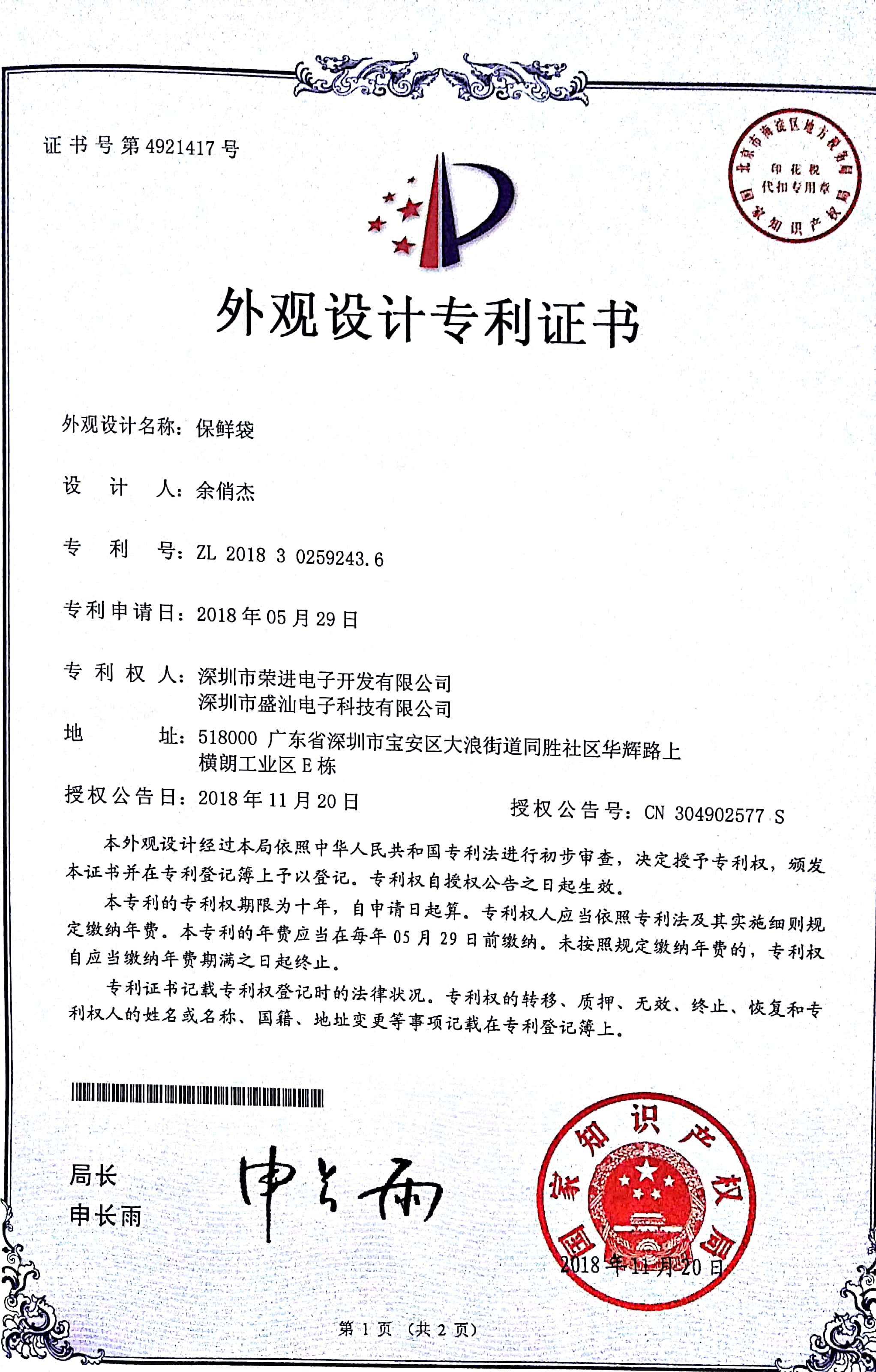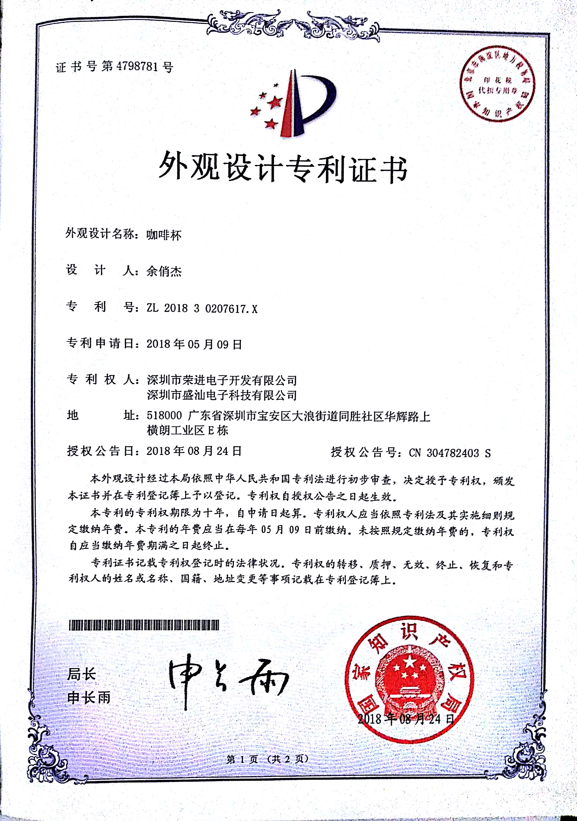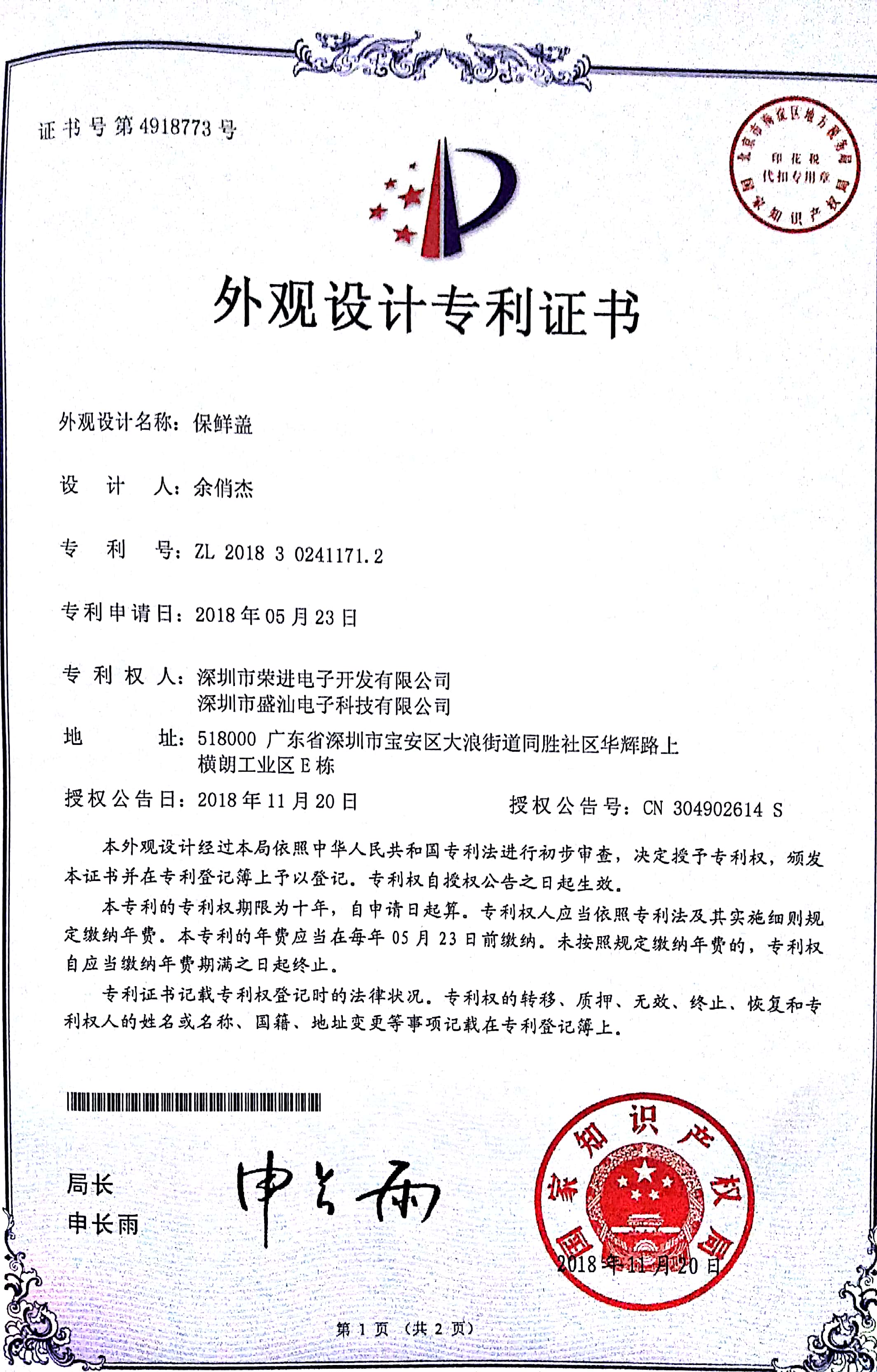 The new patent certificates have come out!