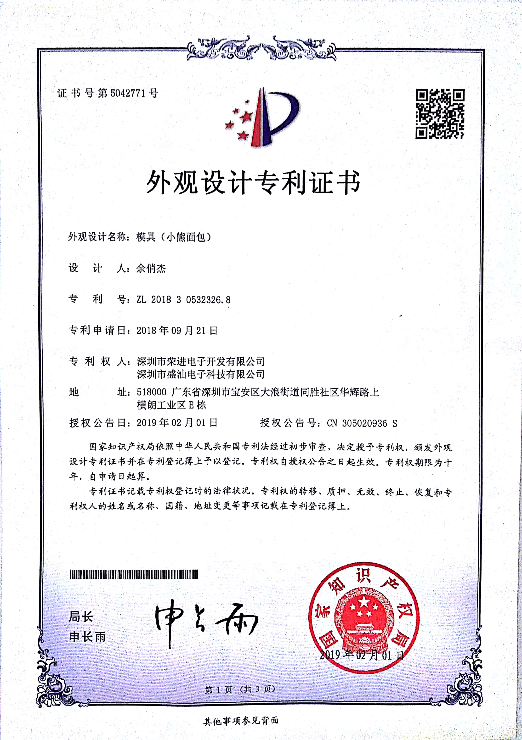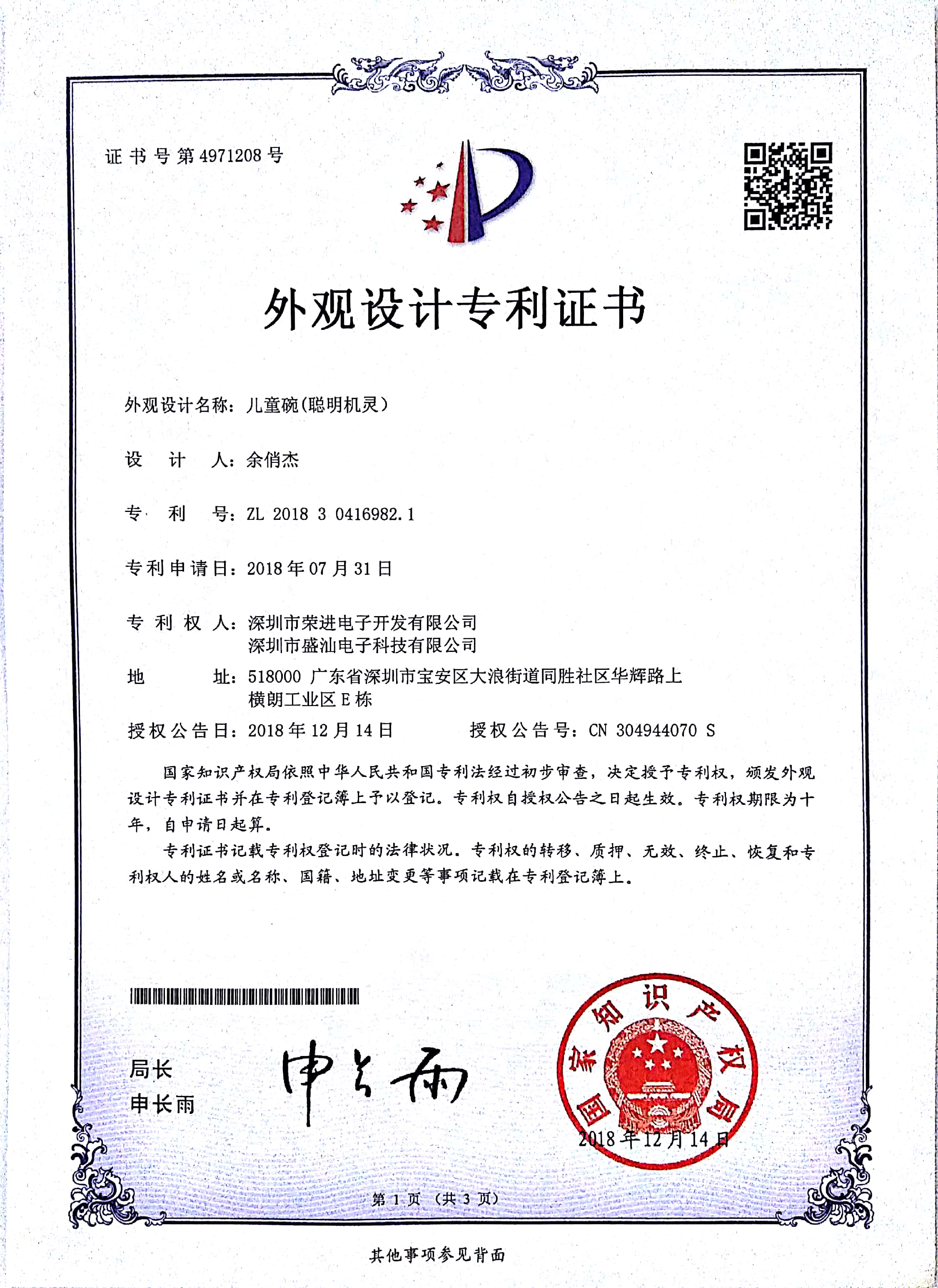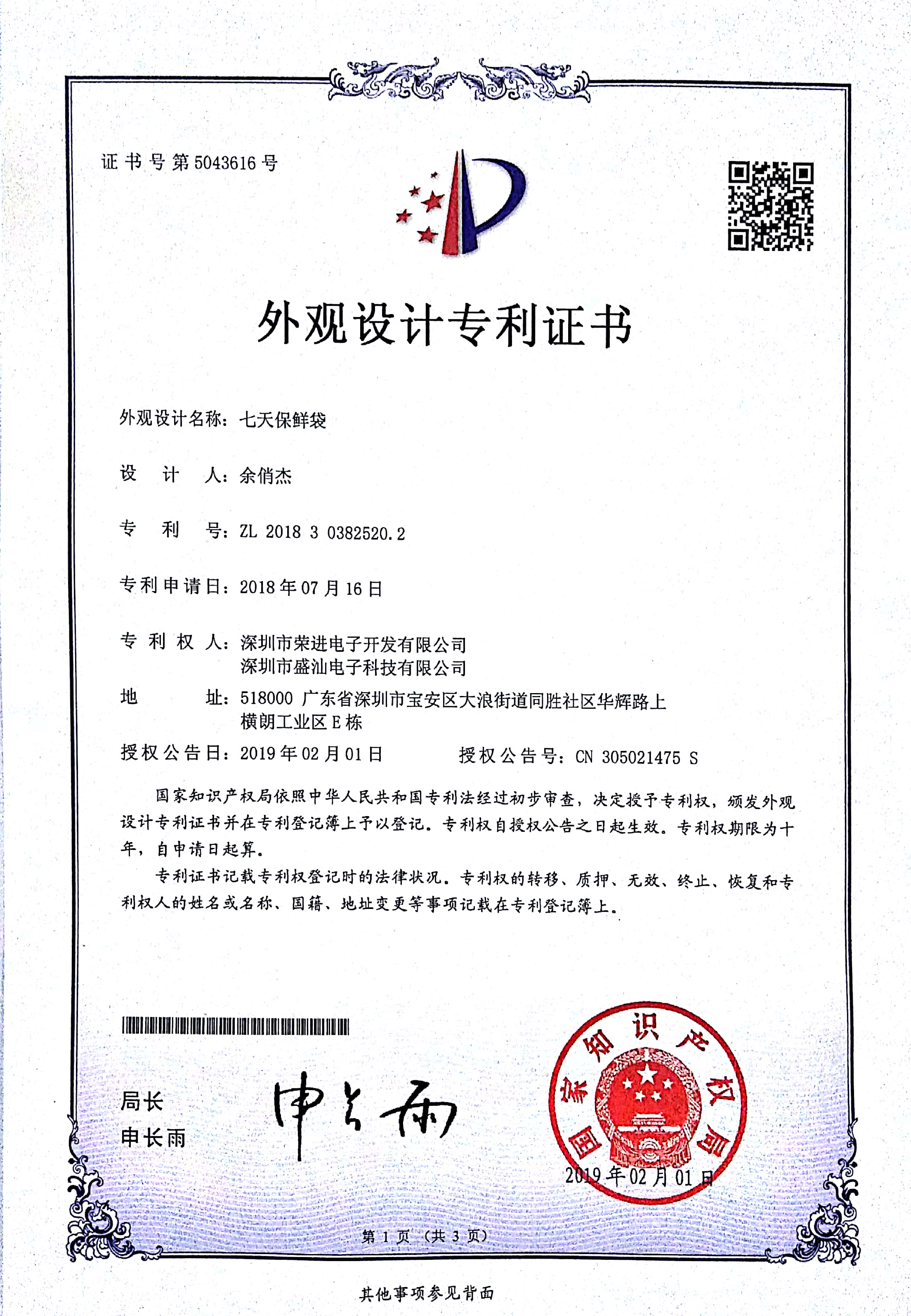 The new patent certificates have come out!