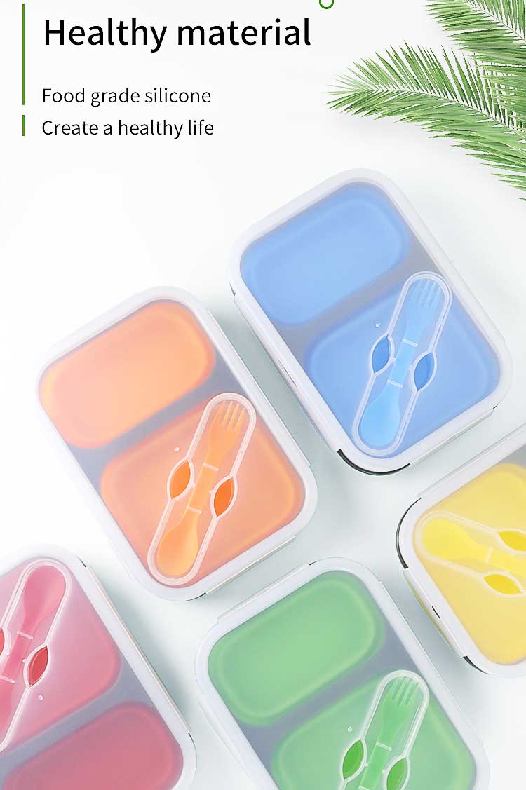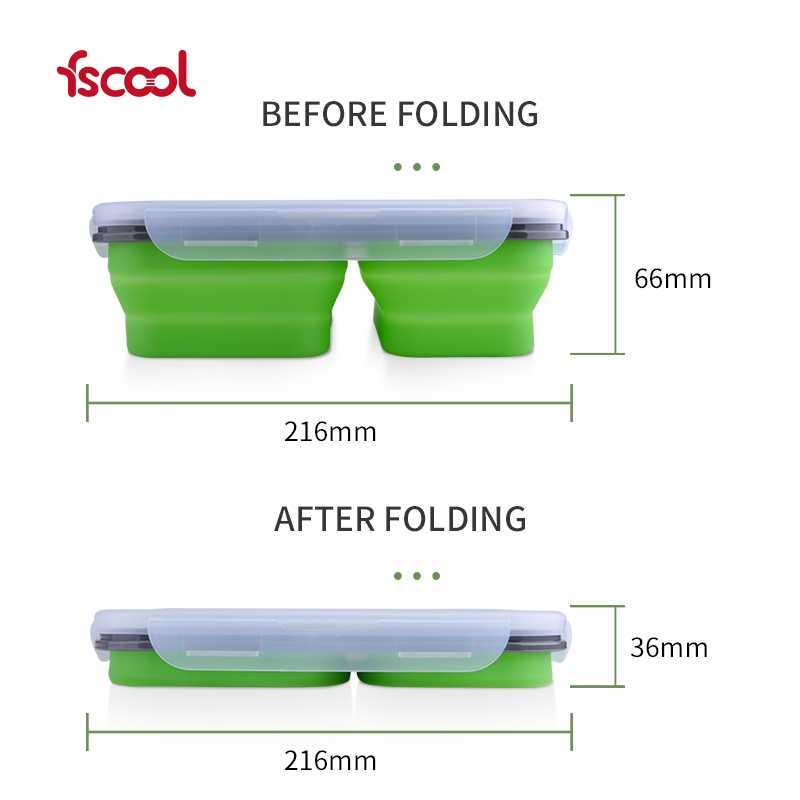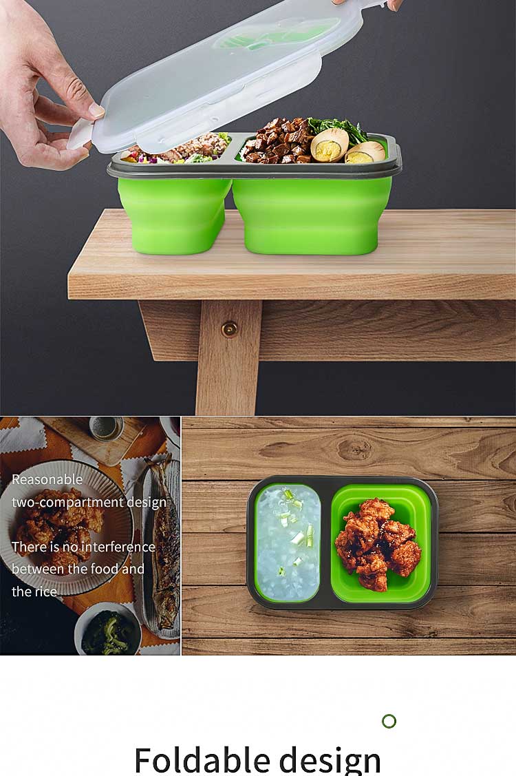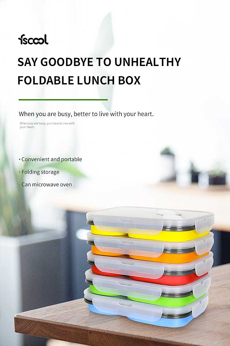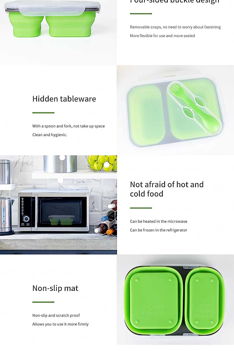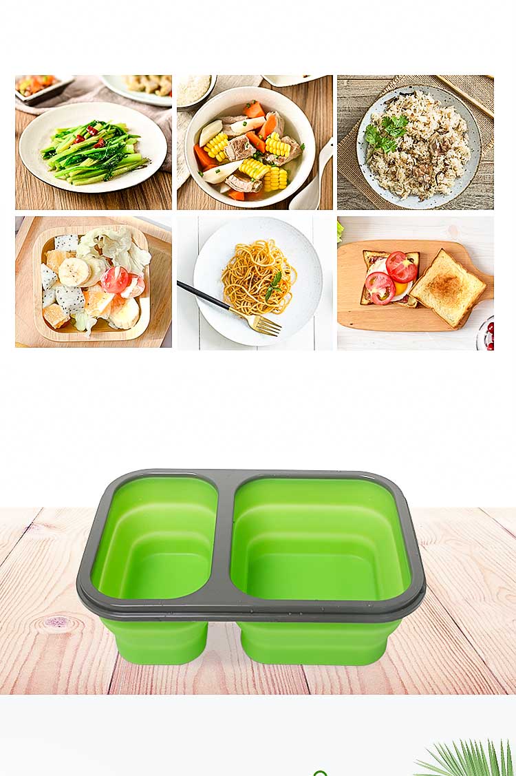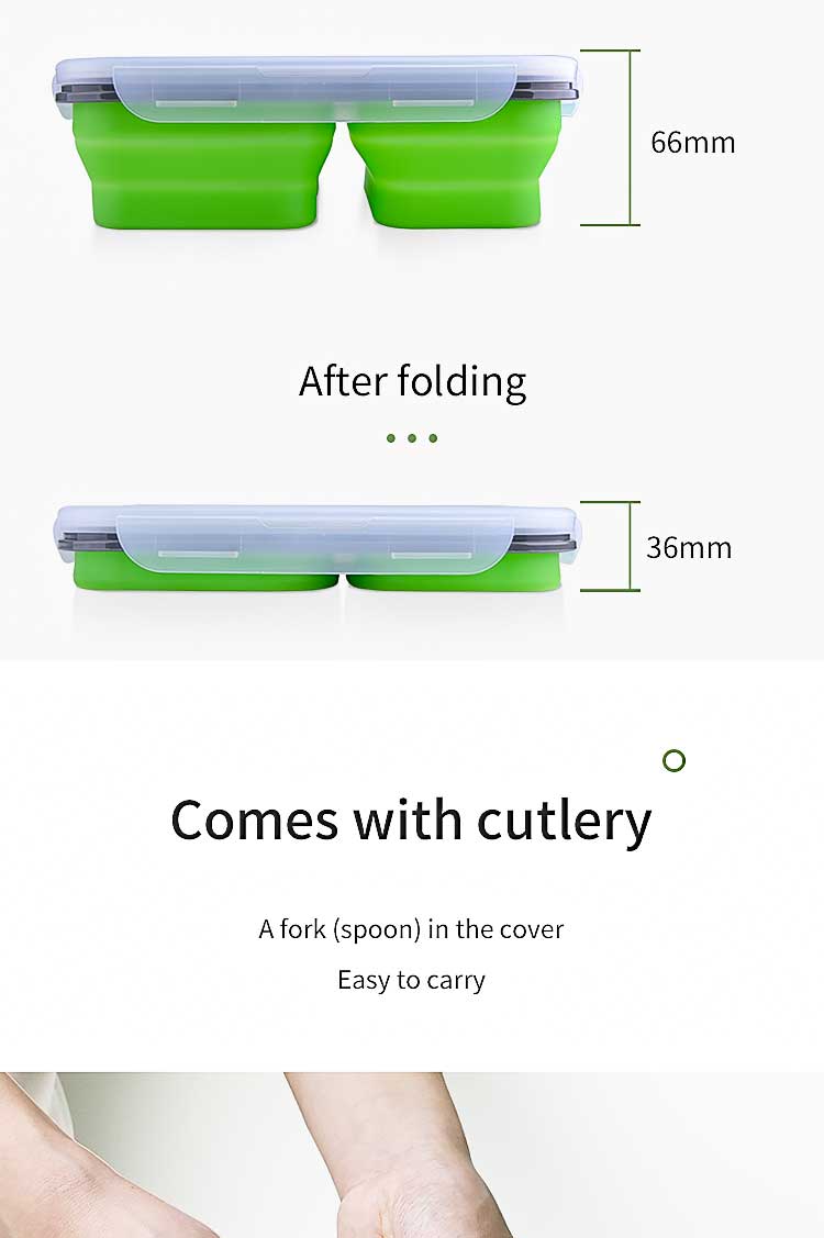 2, Features: silicone lunch box can be folded, can be used repeatedly, modeling novel, easy to clean, no smell, food-grade materials, direct contact with food and no problem.