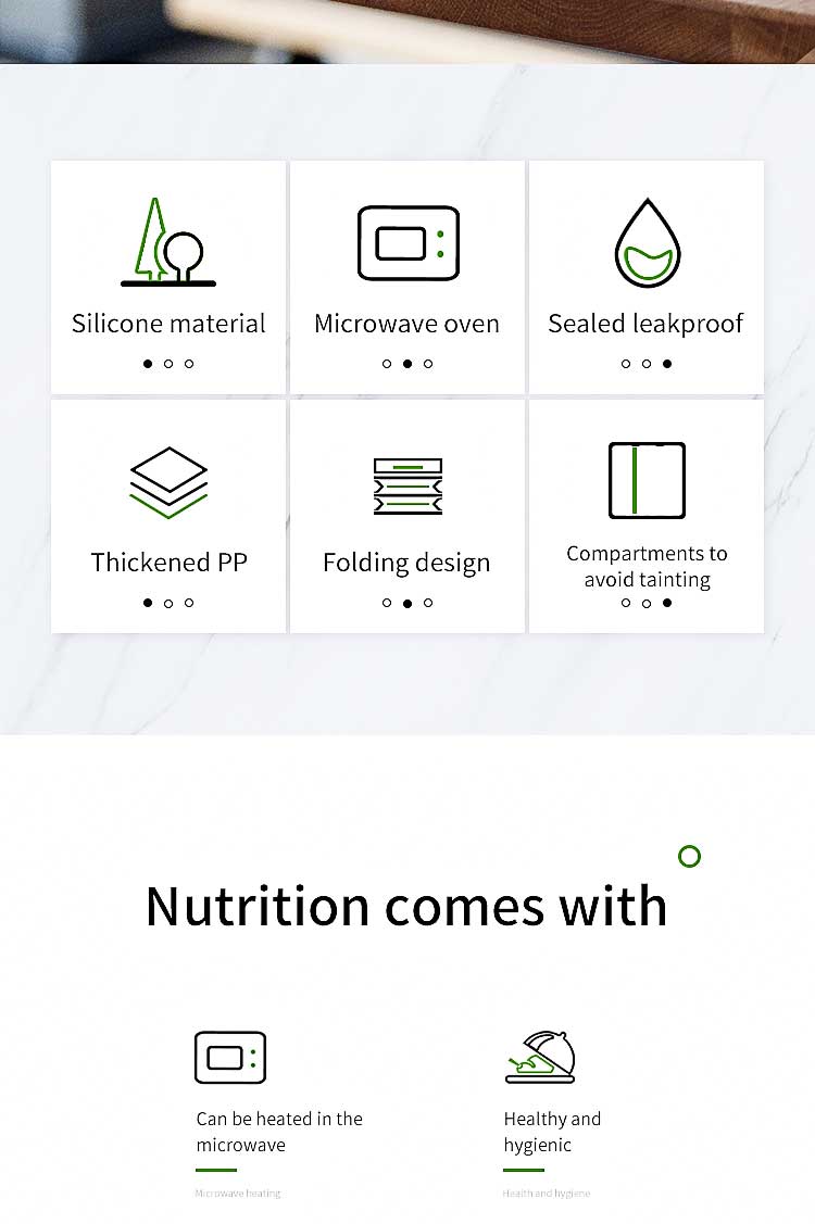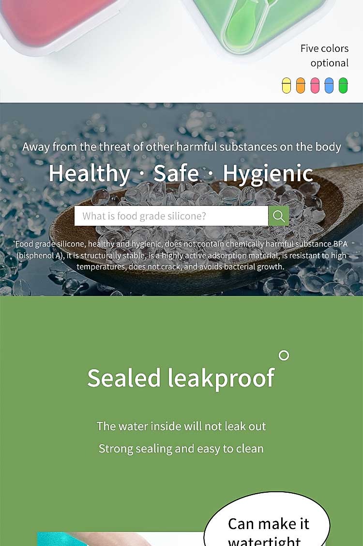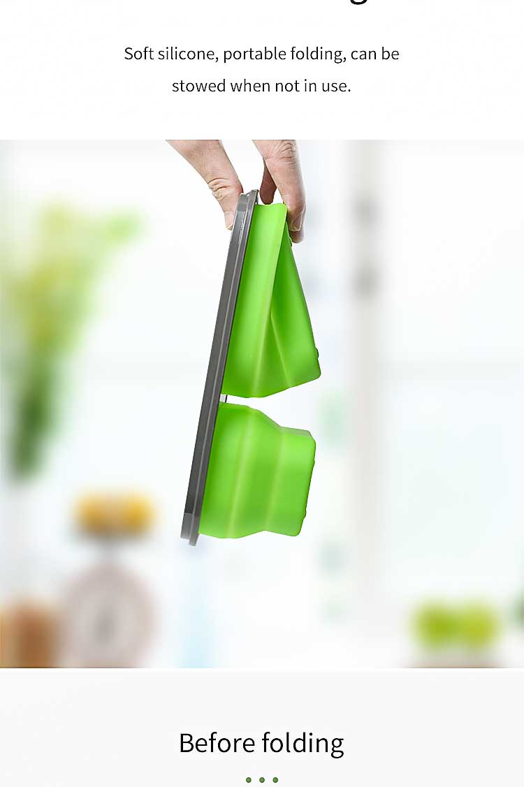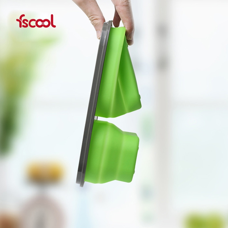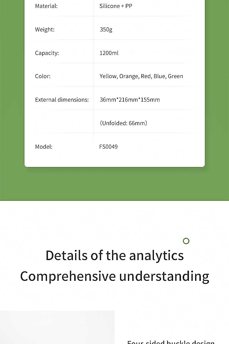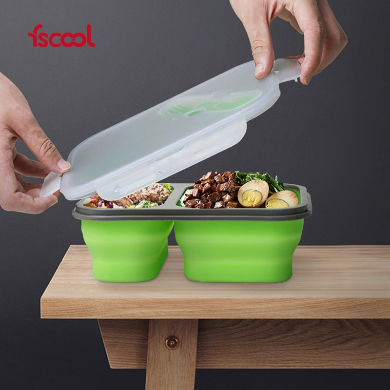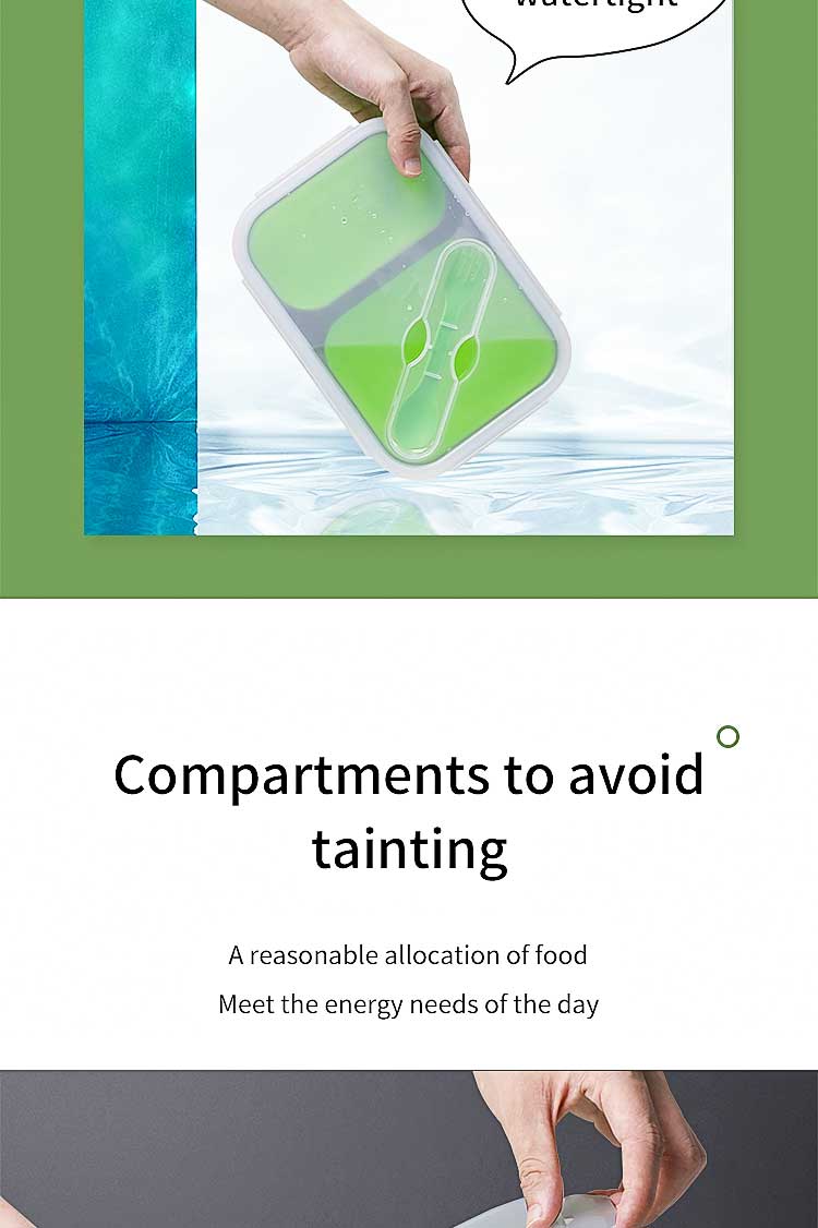 2, Features: silicone lunch box can be folded, can be used repeatedly, modeling novel, easy to clean, no smell, food-grade materials, direct contact with food and no problem.