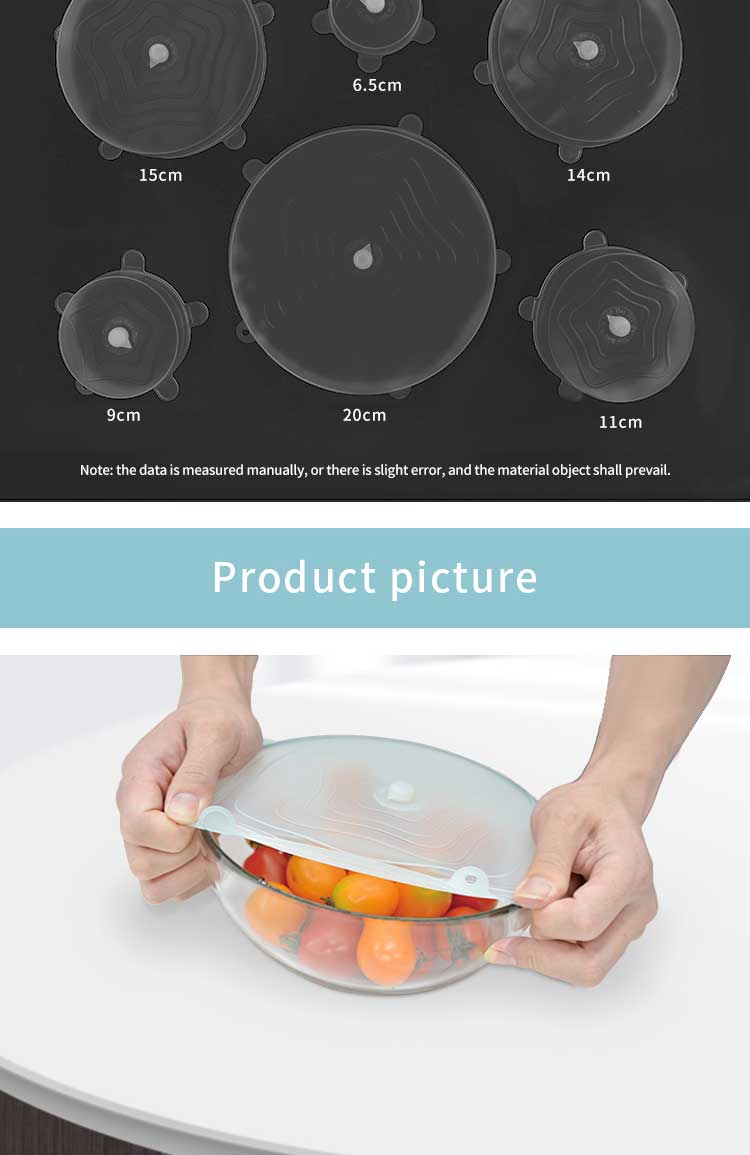 5, Unilid silicone stretch lids is made of food grade silicone material, environmental non-toxic, safe and sanitary, through the German LFGB and other food-grade safety testing.