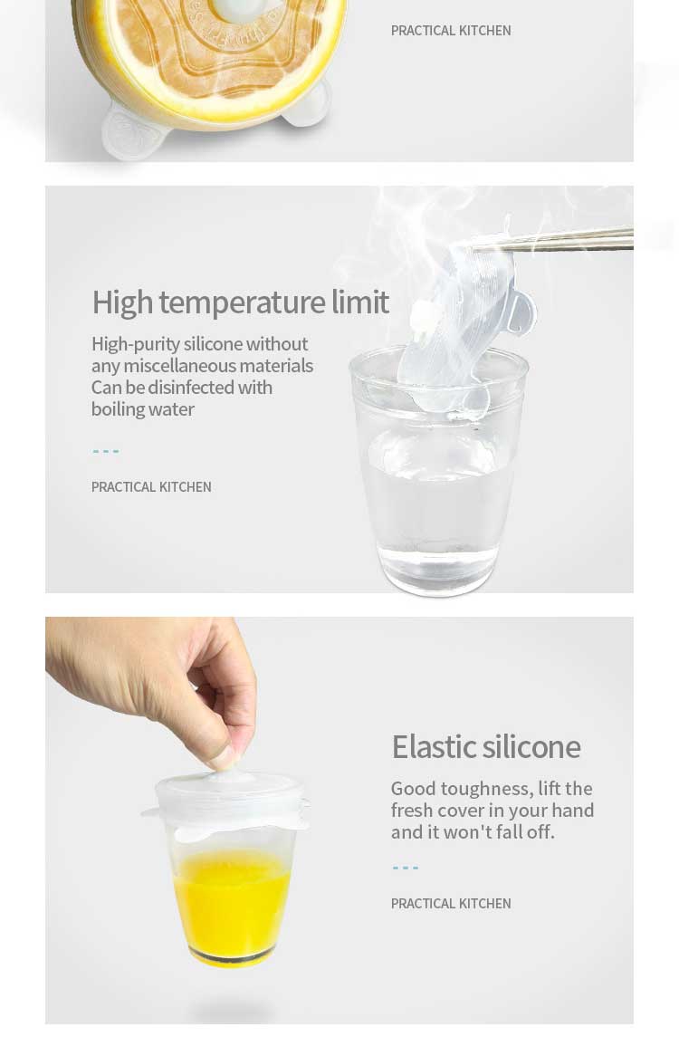3, while the use of unilid silicone stretch lids temperature range, -40 ° C ~ 200 ° C range can be used normally, for hot and cold has excellent weather performance. In the interior can be widely used with electronic microwave ovens, freezers, vegetable cover, coffee cups and so on. In the applicable temperature, the characteristics of the silicone products to maintain good, easy to degenerate.